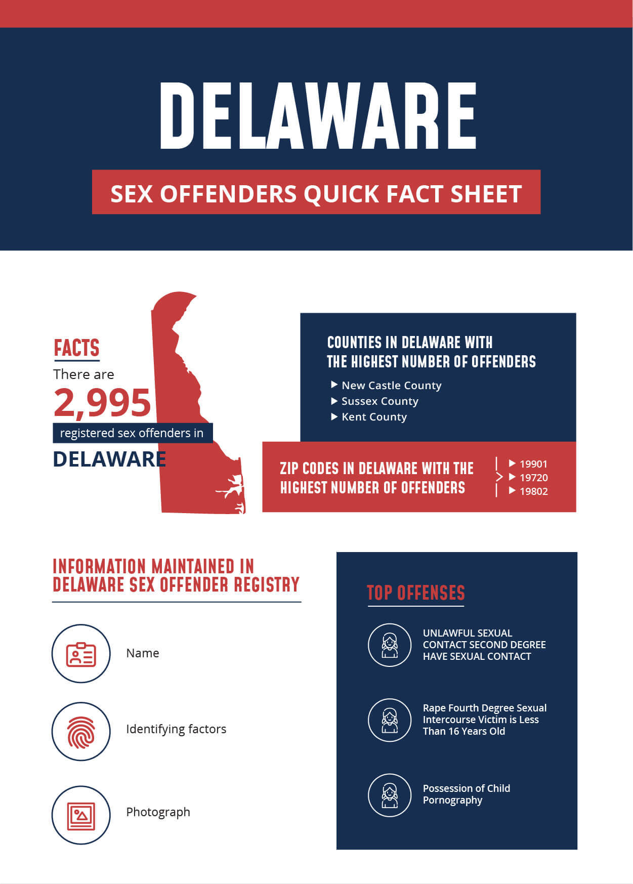 Learn and share vital facts and figures about Delaware sex offenders with this convenient infographic.